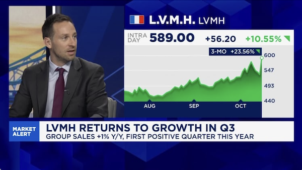 LVMH lit up Paris trading screens yesterday, with shares surging nearly 13%. This was their biggest jump since 2001, following the luxury giant's unexpected return to sales growth.