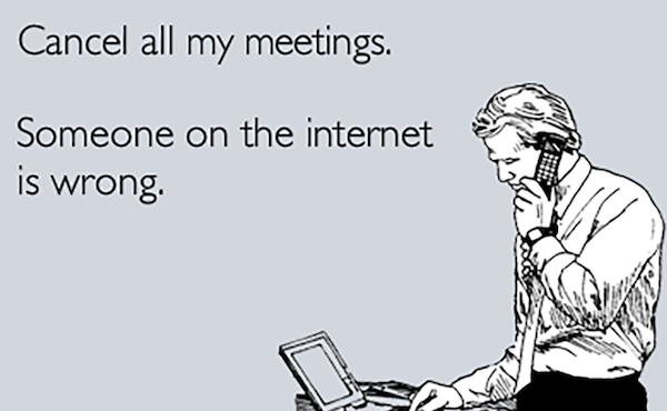 Here's my advice, just don't do it. If you see something you disagree with online, step away from your computer and go for a walk outside.