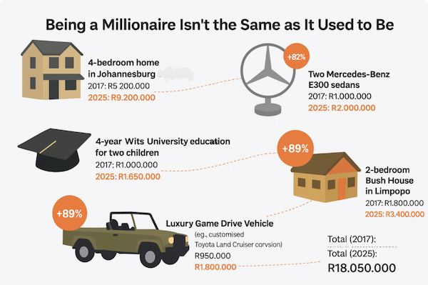 I decided to plug the picture into ChatGPT and asked it to give me a South African version. Here is what it spat out. The increase from R10 million to R18million is significant, but it does show that you need half the amount of money to live the life of the rich and famous in South Africa compared to New York.
